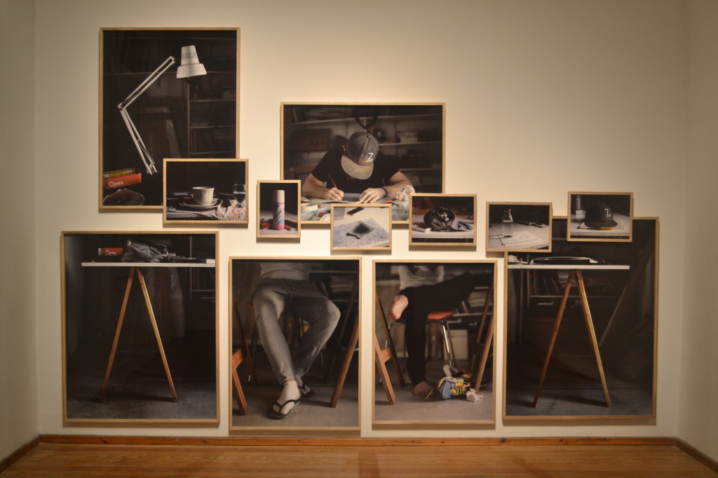 Durante dos años fotografié a Maxi Rossini trabajando en su taller. Era mi primera aproximación al retrato. Me concentré en piernas, brazos, manos, codos, pies y cabeza, al modo de los clásicos estudios a lápiz, que comenzaban estudiando parcelas del total, antes de encarar el paso al lienzo. La idea del boceto en fotografía me resultaba conflictiva y desafiante. Cuando me encontré con toda la cantidad de imágenes, y el diario ya impreso, pensé que me hubiese gustado ponerle Diario de un trabajador.